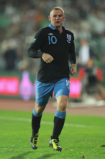 Wayne Mark Rooney is an English footballer who plays as a striker for Premier League club Manchester United and the England national team. Rooney made his senior international debut in 2003 becoming the youngest player to represent England (a record later broken by Theo Walcott). He is England's youngest ever goalscorer. He played at UEFA Euro 2004 and scored four goals, briefly becoming the competition's youngest goalscorer. Rooney featured at the 2006 and 2010 World Cups and is widely regarded as his country's best player. He has won the England Player of the Year award twice, in 2008 and 2009. As of September 2011, he has won 73 international caps and scored 28 goals. Along with David Beckham, Rooney is the most red carded player for England, having been sent off twice.